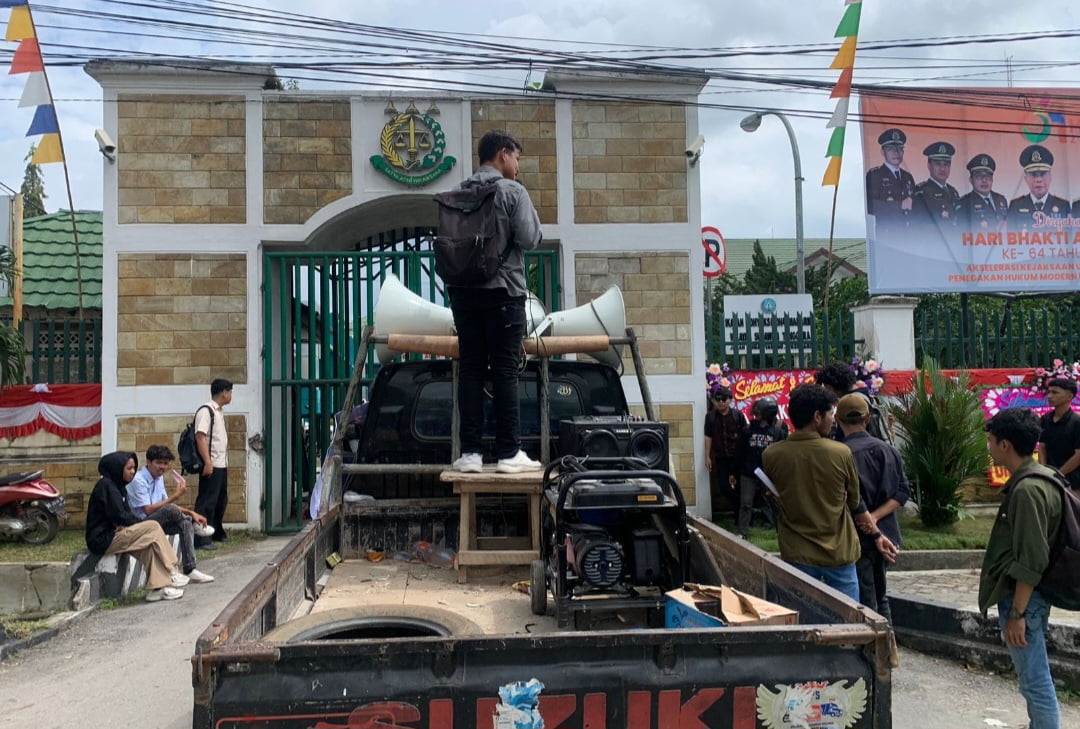 Aksi Unjuk Rasa di Kantor Kejaksaan Tinggi Sulawesi Tenggara Terkait Pembangunan Asrama Mahasiswa Mubar yang Mangkrak