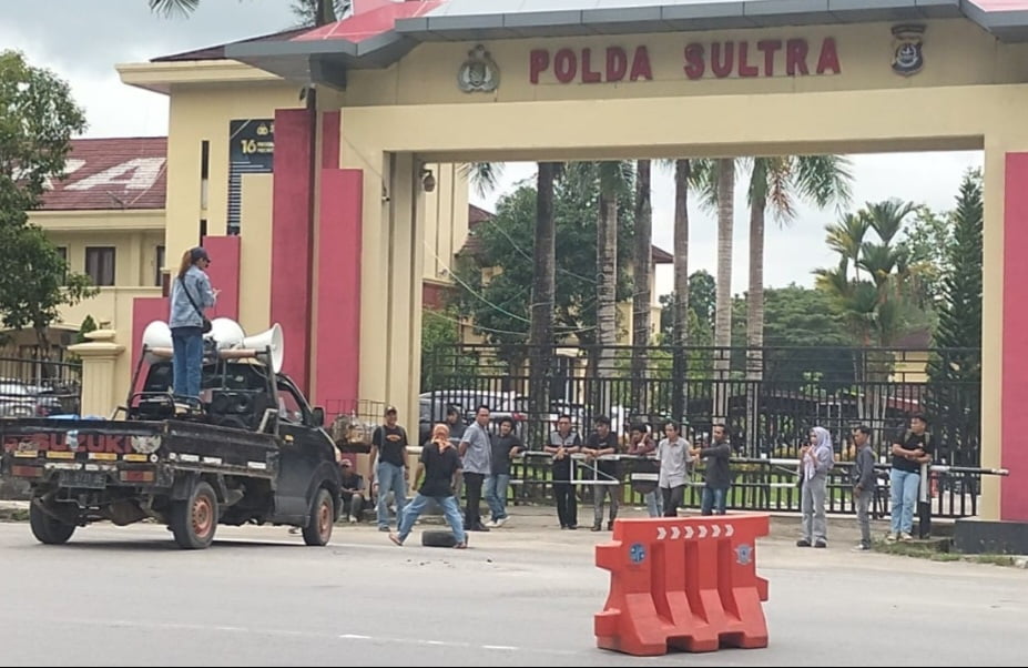 Setelah orasi di Pengadilan Negeri Kendari, pengunjuk rasa melanjutkan pergerakan mereka menuju Mapolda Sulawesi Tenggara untuk menyampaikan desakan kepada pihak kepolisian terkait kasus yang mereka perjuangkan.