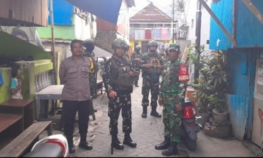 Patroli jalan kaki Babinsa dan Babinkamtibmas di Layang, Tallo (Foto : Tim Redaksi)